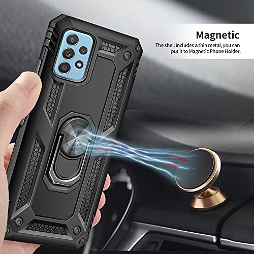 AROYI (2 Styles Case Cover Compatibile con Samsung Galaxy S21 Ultra 5G Custodia, Grado Militare 360° Magnetica Anello Supporto Case e Antiurto Morbida e in Silicone TPU - Nero/Clear (6.5 inch Samsung Galaxy A52 5G)