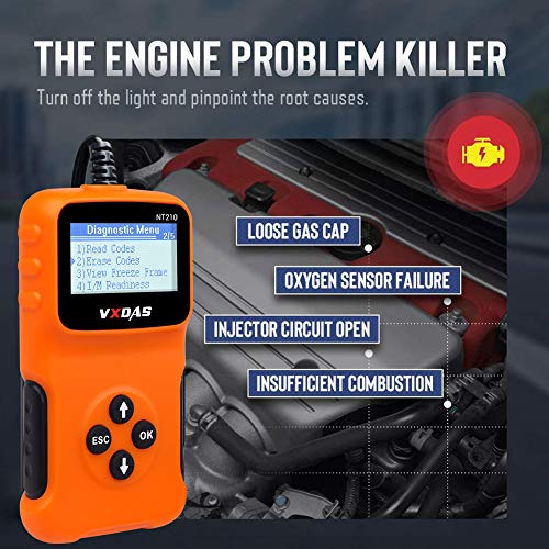 Visualizzazione del codice in tempo reale: questo scanner OBD2 visualizza codici DTC e definizioni di codice sullo schermo allo stesso tempo, consentendo di visualizzare rapidamente il problema del motore senza spendere tempo a interrogare il codice. Fornisce un rilevamento OBD2 più semplice ed efficiente, e anche un principiante può utilizzare questo scanner OSD2 per leggere il codice di errore, scoprire il problema e forse risolverlo.