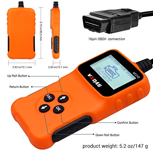 【Design portatile: ha una comoda dimensione portatile e design antiscivolo, e ha quattro pulsanti di funzionamento: scorrere su e giù, pulsanti di ingresso/uscita. Facile da trasportare e utilizzare. Nota: questo scanner OBD2 non è compatibile