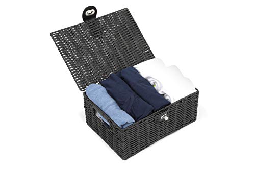 Arpan - 2 cestini in resina intrecciata con coperchio e serratura (nero - piccolo)