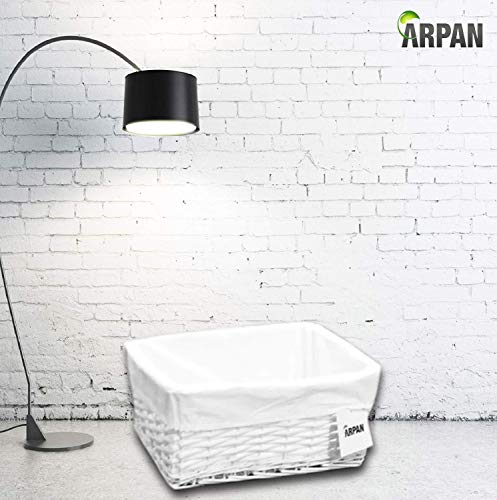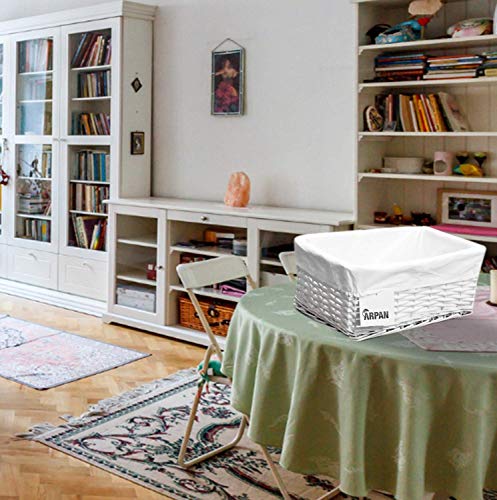 Arpan - 2 cestini in vimini bianco 100% ecologici con panno (M x L 36 x P 25 x A 15 cm)