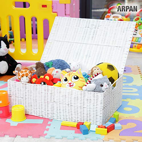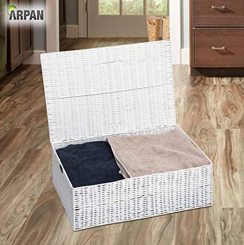 ARPAN - Cestino con Ruote e Coperchio in Resina Intrecciata da infilare sotto Il Letto, per Giocattoli, Biancheria, Bianca (Set da Due cestini di Dimensioni Medie)