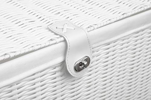 Cesto portabiancheria di medie dimensioni con rivestimento in tessuto bianco;