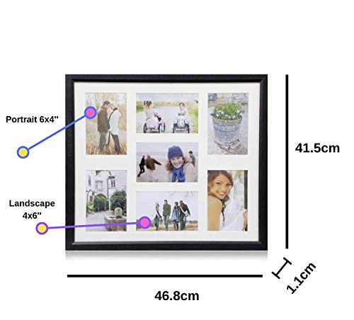 ARPAN, Cornice Multipla in MDF per 7 Foto da 15,2 x 10,2 cm, Nera, 40,5 x 35,2 cm (Larghezza x Altezza)