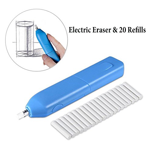 Arpan, gomma elettrica, kit con 20 ricariche - funzionamento a batteria, per matite e carboncini Blue