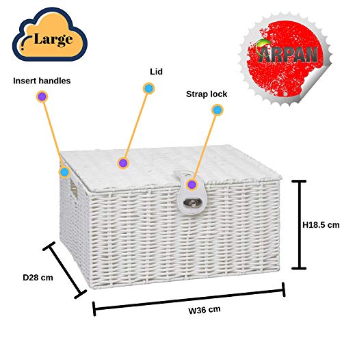 ARPAN Large Resin Woven Storage Basket Box with Lid & Lock - White