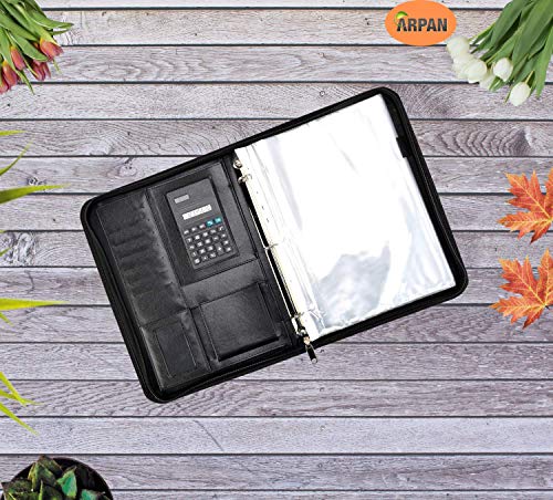 Arpan - Portadocumenti in finta pelle con cerniera, formato A4, con porta penna e calcolatrice, colore: viola