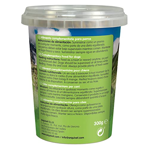 Utilizzare nell'ambito di una dieta equilibrata. I cani devono essere sorvegliati quando mangiano. Conservare in un luogo fresco e asciutto e fornire sempre molta acqua.