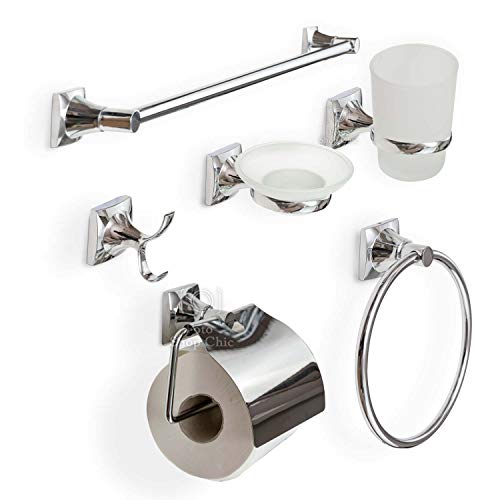 LE CHIC ARREDAMENTI Set Accessori Bagno 6 Pezzi Cromo Lucido, Fissaggio a Parete, Inox Cromato