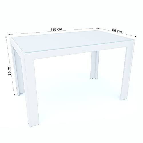 Arreditaly Tavolo da Pranzo In Vetro Temperato Spanish Harlem Tavolo 4 Posti Salvaspazio, Design Moderno Ed Elegante Luxury, Soggiorno Salotto Studio Casa E Ufficio, 115 x 75 x 68 cm (Bianco)