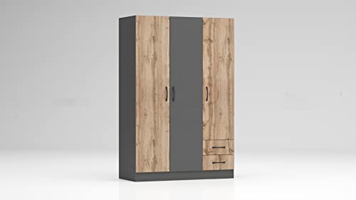 ARREDO DA CASA Armadio Tre Ante Battenti Con Un Tubo Appendiabiti E Dei Ripiani Interni E Due Cassetti Mobile Moderno Disponibile In Più Colori AG2 (Rovere e Antracite)