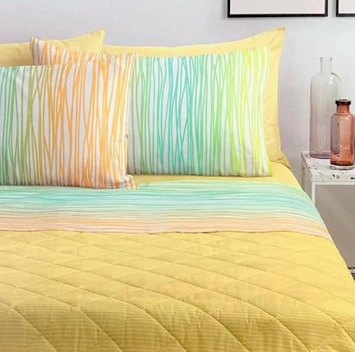 Riad Arredo Completo Letto Matrimoniale 100% Cotone Soffice Morbido (Linee Gialle)