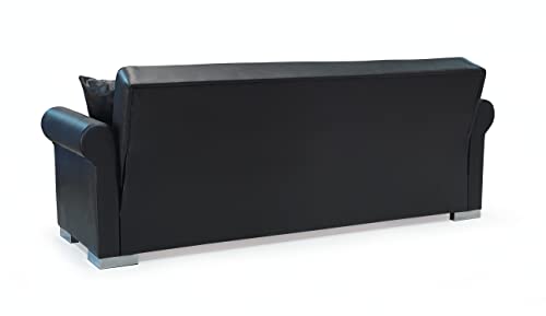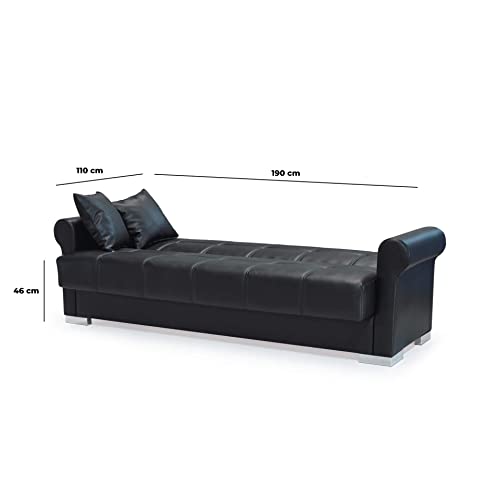 Arredo Divano Letto 3 posti a sedere reclinabile Robusto con cuscini Elegante Fatto per Durare (Ecopelle, Black) ecopelle 650g/mq L 220, P 88, H 85, Hseduta 46