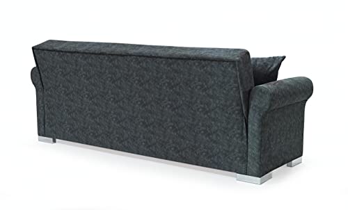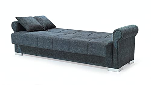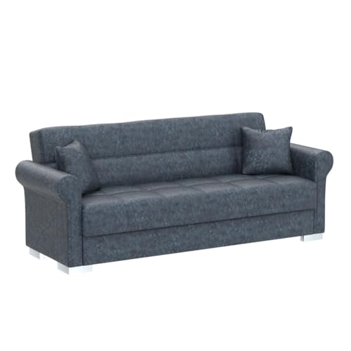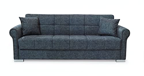 Arredo Divano Letto 3 posti a sedere reclinabile Robusto con cuscini Elegante Fatto per Durare (Effetto nabuk, Grigio Blue) L 220, P 88, H 85, Hseduta 46