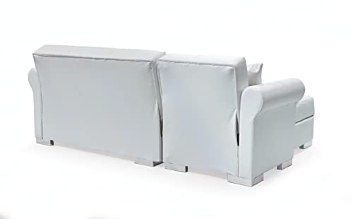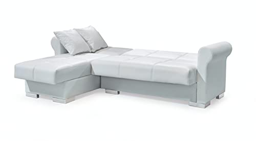Arredo Divano Letto TAMARA 3/4 Posti Contenitore con Chaise Longue reversibile (posizionabile a destra o a sinistra) in Ecopelle Robusto con cuscini Elegante Fatto per Durare (BIANCO)
