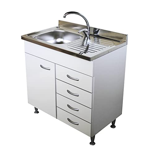 Arredobagno e Cucine Mobile sottolavello Bianco, 1 Anta e cassettiera, Senza lavello Inox cm.80