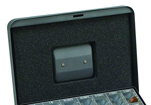 CON VASSOIO PER MONETE E BANCONOTEI: contiene un vassoio per le monete in euro, con colonne graduate per separare e contare i diversi tagli di euro e l'importo totale. Ha un vassoio aggiuntivo sul fondo con 3 scomparti per custodire le banconote,