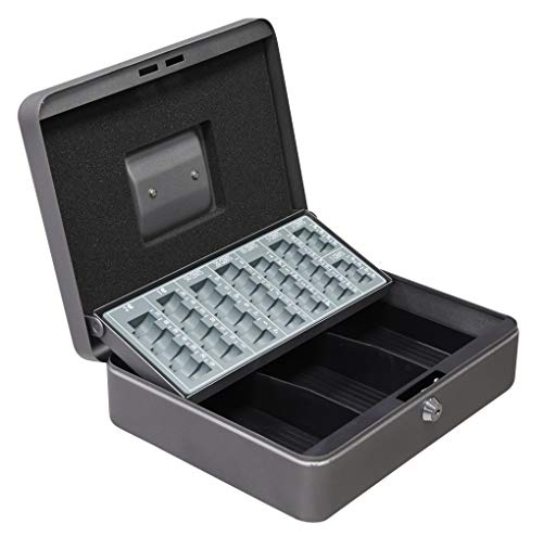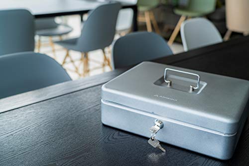 ARREGUI Cashier C9246-EUR Cassetta di sicurezza con chiave per trasportare denaro | Cassetta Portavalori in acciaio con vassoio Portamonete e Banconote | Cassaforte portatile larghezza 30 cm | Grigio