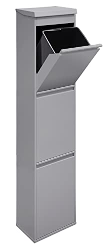 ARREGUI Top CR322-B Pattumiera per raccolta differenziata con ripiano superiore multiuso, 3 secchi, mobile d'acciaio per differenziata, 3 x 17L - 51L, grigio chiaro