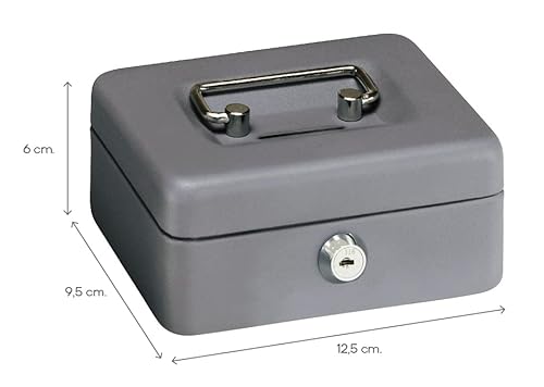 ARREGUI Elegant C9006 Cassetta di sicurezza con chiave per contare e trasportare denaro | Cassetta Portavalori in acciaio con fessura | Cassaforte portatile de 12,5 cm di larghezza | Grigio grafite