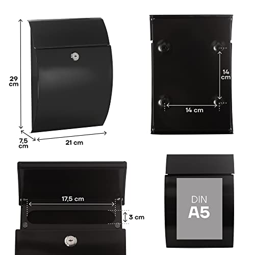 ARREGUI Galan E5964 Cassetta Postale Individuale in Acciaio | Cassetta Postale Da Esterno | Cassetta delle Lettere | Dimensione S (DIN A5) | Cassetta della Posta da Parete | Facile da Montare | Nero