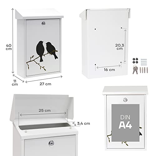 ARREGUI Premium E5601-BIR Cassetta Postale Individuale in Acciaio con Serigrafia Decorativa "Birds", Dimensione M (DIN A4 e Riviste), Bianco