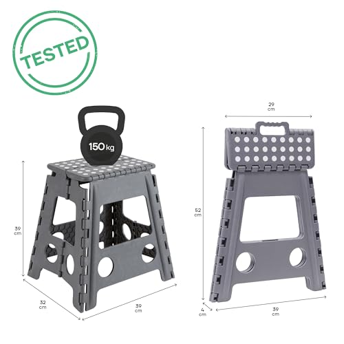 ARREGUI TB-039-G Sgabello Pieghevole Multiuso | Sgabello per Adulti o Bambini | Scala Pieghevole | Scalino | Sgabello per cucina, bagno, campeggio | 39 cm di altezza | Grigio
