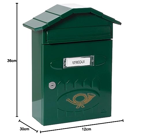 ARREGUI Villa E5003 Cassetta Postale Individuale in Acciaio, Cassetta della Posta da Parete, Cassetta delle Lettere, Lamiera Spessa, Dimensione M (DIN A4 e Riviste), Facile da Montare, Verde