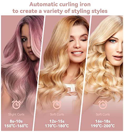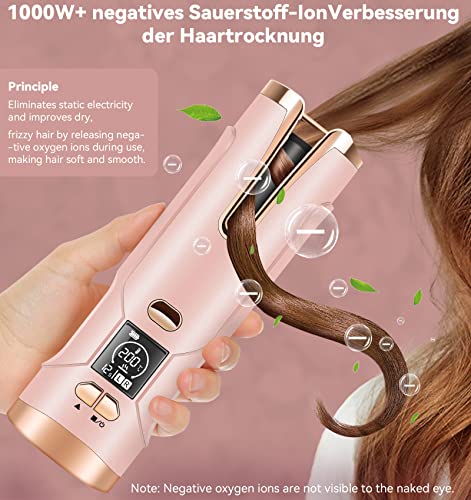Arricciacapelli Automatico, Piastra Per Boccoli Automatica con batteria da 5200mAh, Ceramica Usb Portatile Ferro Arricciacapelli Automatico, Con Display a LCD e Funzione Anti-Pizzicamento, Rosa (Rosa)