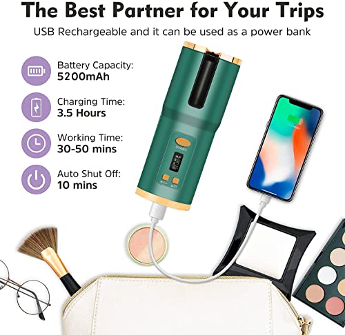 Arricciacapelli Automatico Senza Fili, Ferro Arricciacapelli Automatico con Display LED Temperatura e Timer Regolabili (Green)