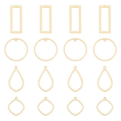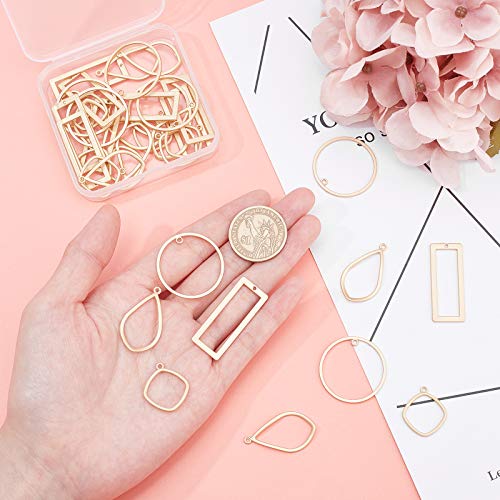 Arricraft 40 ciondoli a forma di lunetta in lega, con lunetta aperta sul retro, a forma di rombo, a goccia, ad anello/rettangolo per gioielli fai da te in resina UV pressata, colore oro opaco