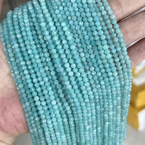 Arricraft Circa 260 pz 2 Fili di Perline di Amazzonite Naturale, Perline Rotonde in Pietra di Fiume Naturale Non Tinte Sfaccettate Sfaccettate con Perline Centrali per La Creazione