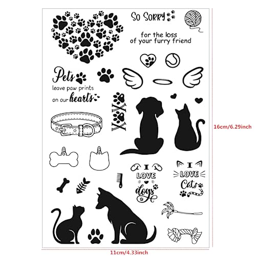 Perfetto per il fai da te: questo set di timbri trasparenti per cani e gatti ha una bella stampa a forma di zampa, frase sentimnet per animali domestici, targhetta, ideale per animali domestici a tema o creazione di biglietti, diari, artigianato, scrapbooking e decorazioni per album