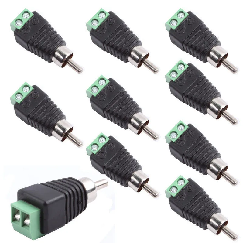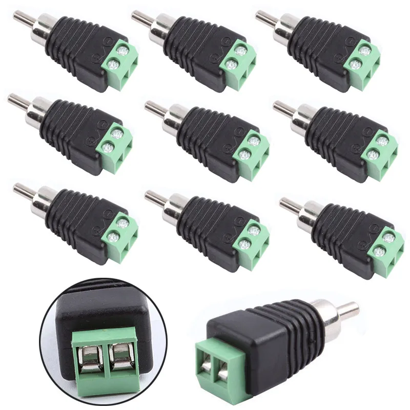 New Arrival 10Pcs Phono Speaker Wire Cable to Audio Male RCA Connector Professional RCA to Terminal Block Adapter