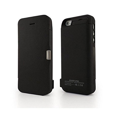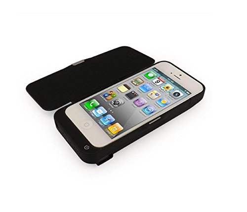 New Arrival Muze-colore: nero-Batteria ricaricabile per Iphone 5C, 4200mAh di Backup esterno-Caricabatterie Power Bank-Custodia a libro in pelle, compatta, con supporto, per Iphone 5, motivo: %2F %2F 5C/5S, compatibile con IOS 7), per confezione la vendita