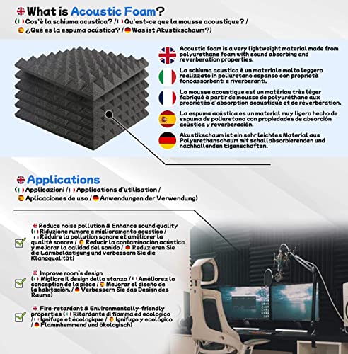 ✅ MIGLIORAMENTO DELLA QUALITA ACUSTICA - Riducendo il suono indesiderato utilizzando i pannelli di assorbimento, e possibile rendere altri suoni molto piu chiari. Cio porta a una migliore intelligibilita del parlato nelle aule o nei luoghi di esibizione. Puo anche aiutare in ambienti di vendita al dettaglio e ristoranti, quindi il tempo non e perso cercando di catturare cio che la gente sta dicendo.