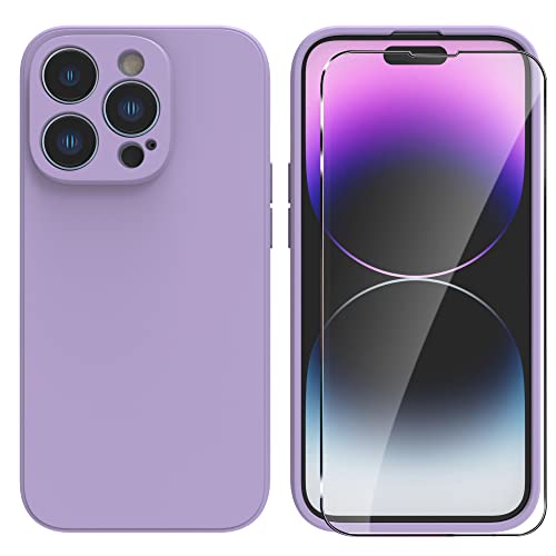 ARRYNN Custodia per iPhone 14 Pro 6.1" Cover + Pellicola Protettiva Vetro Temperato,Liquid Silicone TPU Case Cover per iPhone 14 Pro 6.1" - Viola
