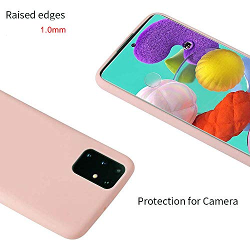ARRYNN Custodia per Samsung Galaxy A51+ Pellicola Protettiva Vetro Temperato,Liquid Silicone TPU Custodia Case Cover per Samsung Galaxy A51-Rosa