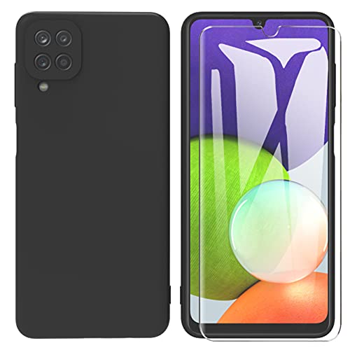 ARRYNN Custodia per Samsung Galaxy A22 4G + Pellicola Protettiva Vetro Temperato,Liquid Silicone TPU Custodia Case Cover per Samsung Galaxy A22 4G -Nero