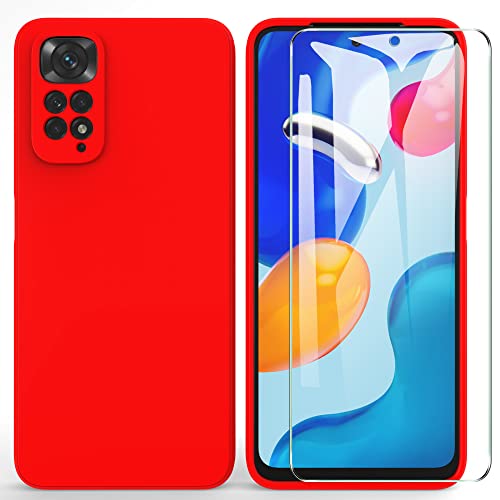 ARRYNN Custodia per Xiaomi Redmi Note 11 / Note 11s 4G Cover + Pellicola Protettiva Vetro Temperato,Liquid Silicone TPU Case Cover per Xiaomi Redmi Note 11 / Note 11s 4G - Rosso