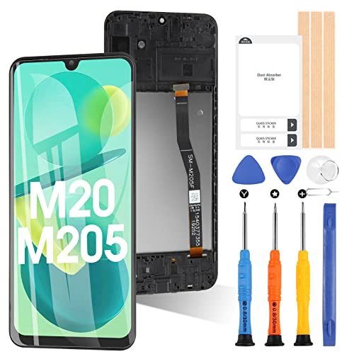 ARSSLY OLED LCD Schermo per Samsung Galaxy M20 M205 6,3" Display per SM-M205F SM-M205FN SM-M205G SM-M205M SM-M205N Digitazer Touch Screen Assembly con Strumenti(Nero con Cornice)
