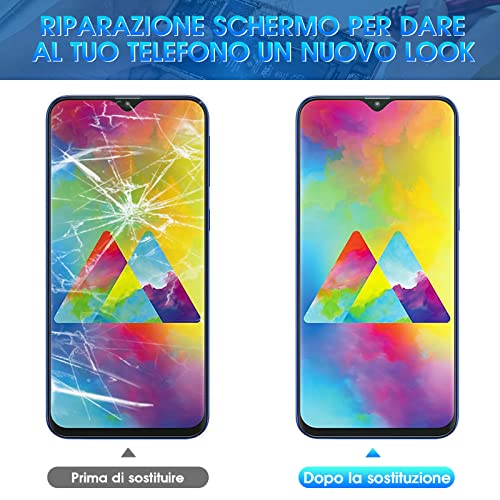 【Pacchetto & Servizio】: La confezione include 1 * schermo per Samsung Galaxy M20" + 1 * set di strumenti di riparazione + 1 * pellicola protettiva + 1 * adesivo impermeabile.