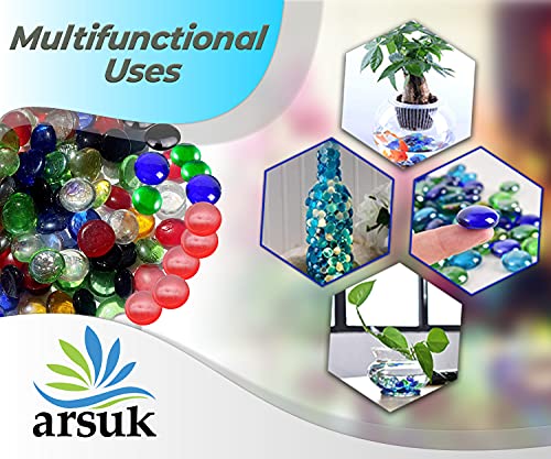 ARSUK Ciottoli di vetro Pietre decorative Perline Pepite Gemme Tessere mosaico per vasi Ciotole da giardino artigianali Acquario (70-80 ciottoli misti)