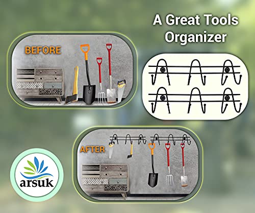 ARSUK Porta Attrezzi da Giardino da Parete, Organizer Parete Attrezzi, Portascope da Muro Acciaio 44 x 13,7 x 8 Sim, 1070 g (Nero)