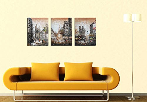 OO art-stretched Streetscape Tour Eiffel arco trionfale dipinti a olio dipinti a mano moderno Wall Art Decor 3 pz/set Paris regali Coffee