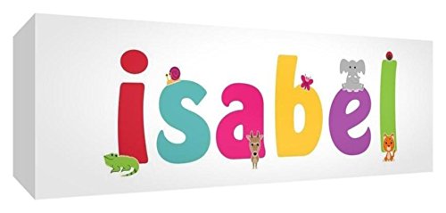 Feel Good Art-Tela con Gallery Wrapped Nursery, pannello frontale con Design rettangolare con illustrazioni e personalizzabile con nome da ragazza, 21 x 59 x 4 cm, misura media, Isabel)