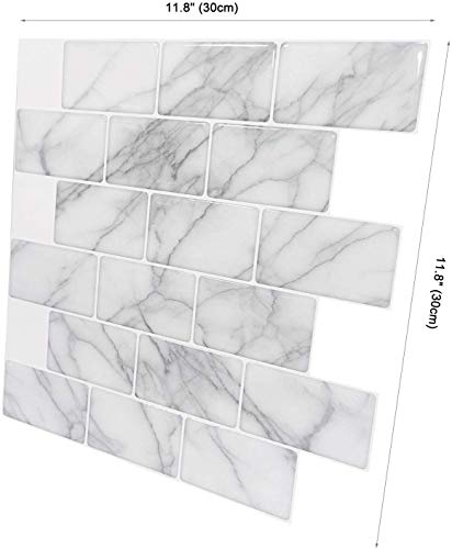 Art3d - Piastrelle autoadesive per cucina, paraschizzi per cucina, 10 fogli (30 x 30 cm), motivo marmo grigio