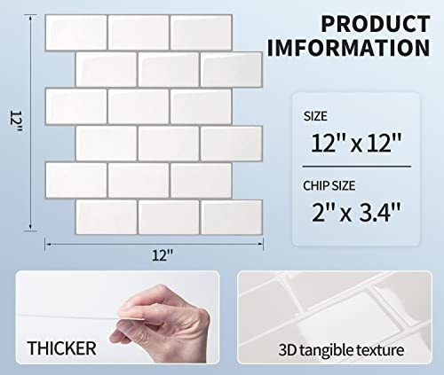 Art3d Piastrelle Subway Peel and Stick Backsplash Bianco Caldo Stick on Tiles Kitchen Backsplash (10 piastrelle, versione più spessa)