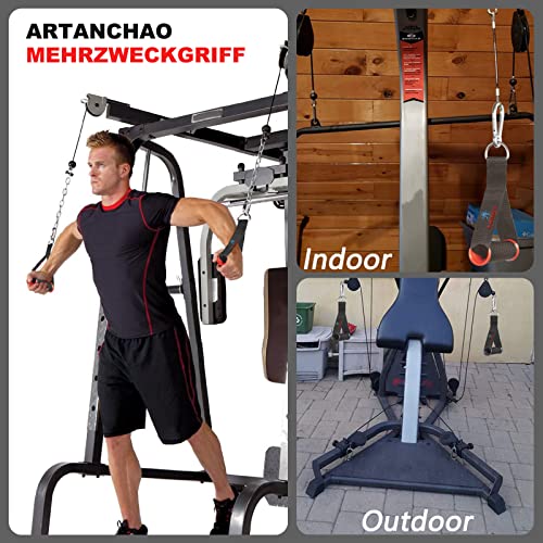 Artanchao 2 maniglie per bagni di resistenza, resistenti in gomma, con 2 moschettoni, per palestra, yoga, allenamento fitness (rosso)