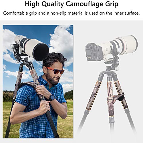 Spalline mimetiche: il treppiede in carbonio dispone di un pacchetto mimetico su tre gambe e un cuscinetto mimetico sulle spalle tra due gambe. È possibile trasportare il dispositivo senza smontarlo. È molto adatto per sparare nel campo.